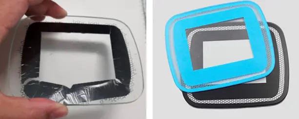 Kurangkan cahaya/silau yang tersesat: Kelebihan lensa penutup biasanya perlu dicetak dengan dakwat sempadan hitam atau hitam lain (BMV) untuk menyembunyikan pendawaian dalaman, komponen, lapisan pelekat, dan meningkatkan kontras visual skrin. Dakwat anti-UV biasanya merupakan peningkatan fungsi dakwat sempadan ini.