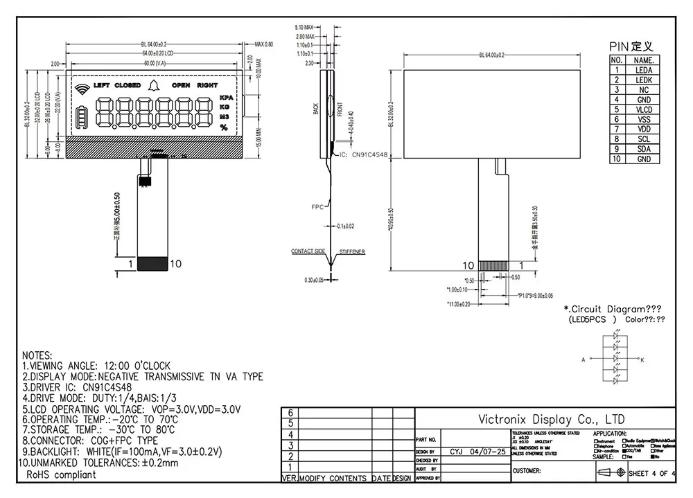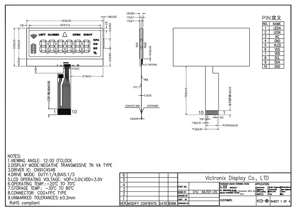 Modul LCD segmen VX50472 VA ini sangat dihormati di pasaran Jepun, apa yang menjadikan produk kami berbeza daripada pengeluar lain? Pada mulanya, ia mempunyai paparan transmissive negatif dengan arah tontonan 12 jam yang optimum dan sistem latar belakang LED putih (VF = 3.0V, jika = 60mA). Kedua, ia telah disahkan melalui operasi tinggi-temp (70 ° C)/rendah (-20 ° C), 90%rintangan kelembapan RH, dan ujian getaran 10-55Hz untuk beroperasi dari -20 ° C hingga +70 ° C. Selain itu, ia menggunakan penyambung jenis pemandu CN91C4S48 dan COG+FPC. Di samping itu, kawasan paparannya ialah 60 × 24 mm dan dimensi garis besarnya ialah 64 × 2.8 × 32 mm (excl. FPC).